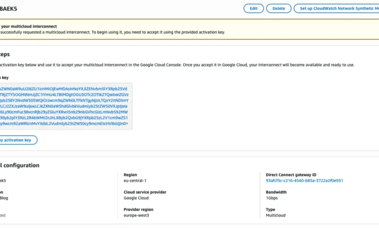 The provisioning of an AWS Interconnect — multicloud connection is designed to be swift and intuitive. The process typically takes minutes, initiated from the AWS Direct Connect console. Users navigate to the AWS Interconnect section, select their desired cloud provider (e.g., Google Cloud), specify source and destination regions, and define bandwidth requirements. A crucial step involves providing the relevant cloud provider’s project ID. AWS then generates an activation key, which is used on the partner cloud side to finalize the connection. Once established, routes propagate automatically in both directions, enabling data exchange between workloads in a matter of minutes.